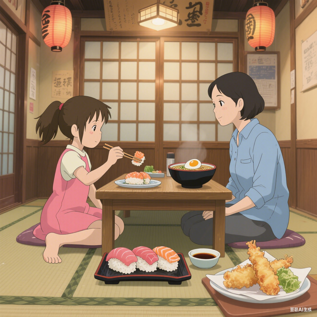 今天放學(xué),媽媽帶我去吃日本料理。一進(jìn)門就聞到一股淡淡的海苔香。我們坐在榻榻米上,脫了鞋,腳好涼。我點(diǎn)了最愛的三文魚壽司,魚片粉粉的,米飯軟軟的,蘸一點(diǎn)醬油,一口下去好滿足。媽媽點(diǎn)了拉面,湯很濃,上面漂著一顆溏心蛋。我還用筷子夾了一塊天婦羅,脆脆的,有點(diǎn)油。吃完我們喝了熱熱的麥茶,肚子暖暖的。